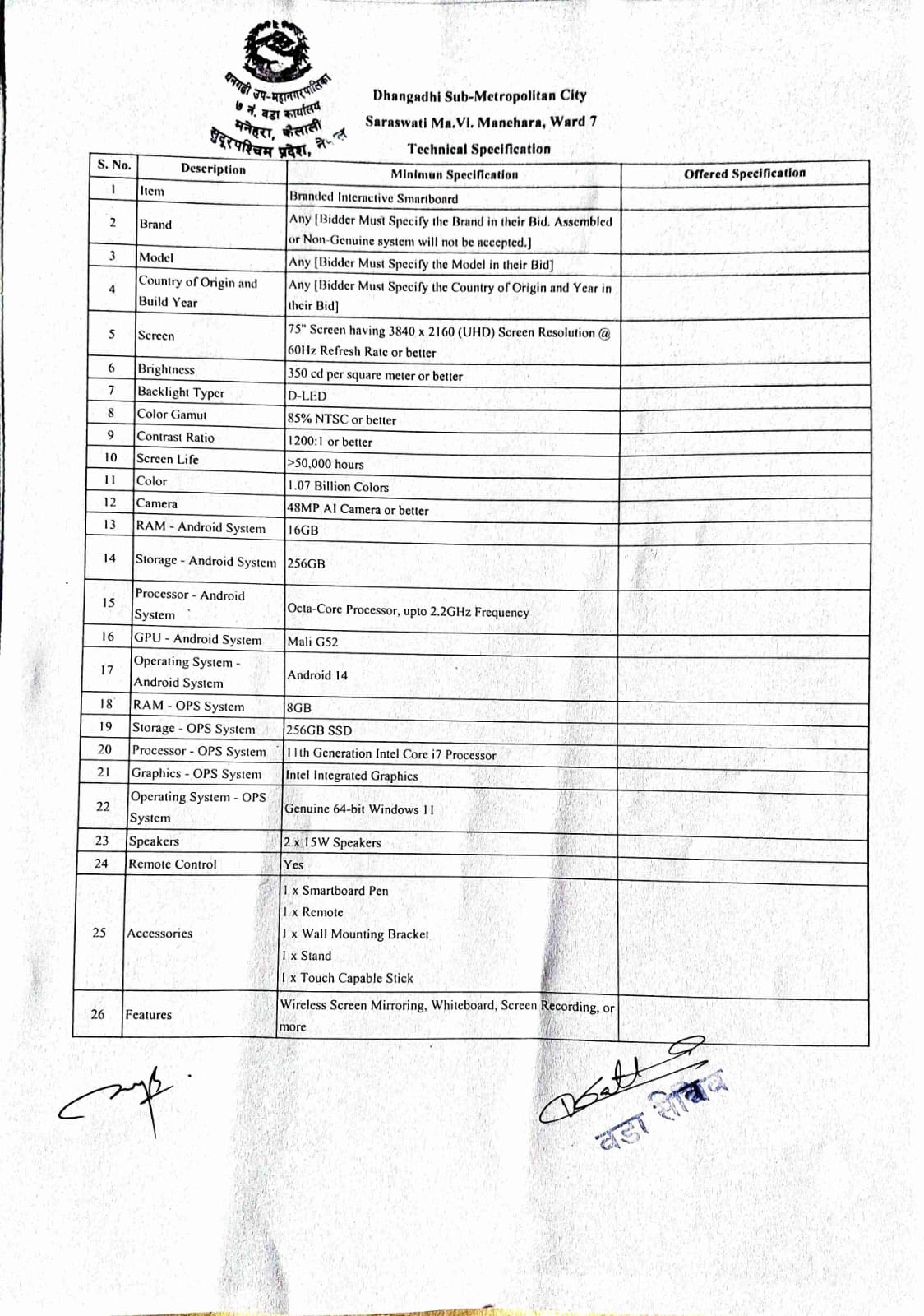 » वडा नं ०७ को दररेट पेश गर्ने सम्बन्धी सूचना [सरस्वती मा.वि. मनेहरमा स्मार्ट बोर्ड जडान]