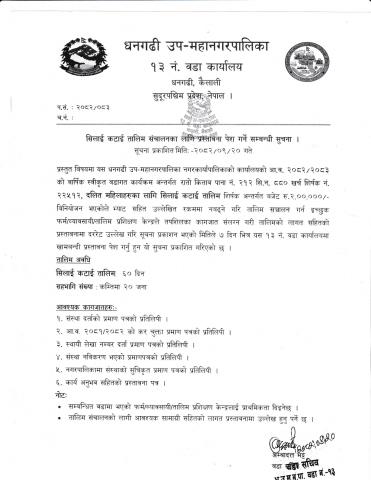 वडा नं १२ को कार्यालयको दररेट पेश गर्ने सम्बन्धी सूचना [Contruction of Various Work ]