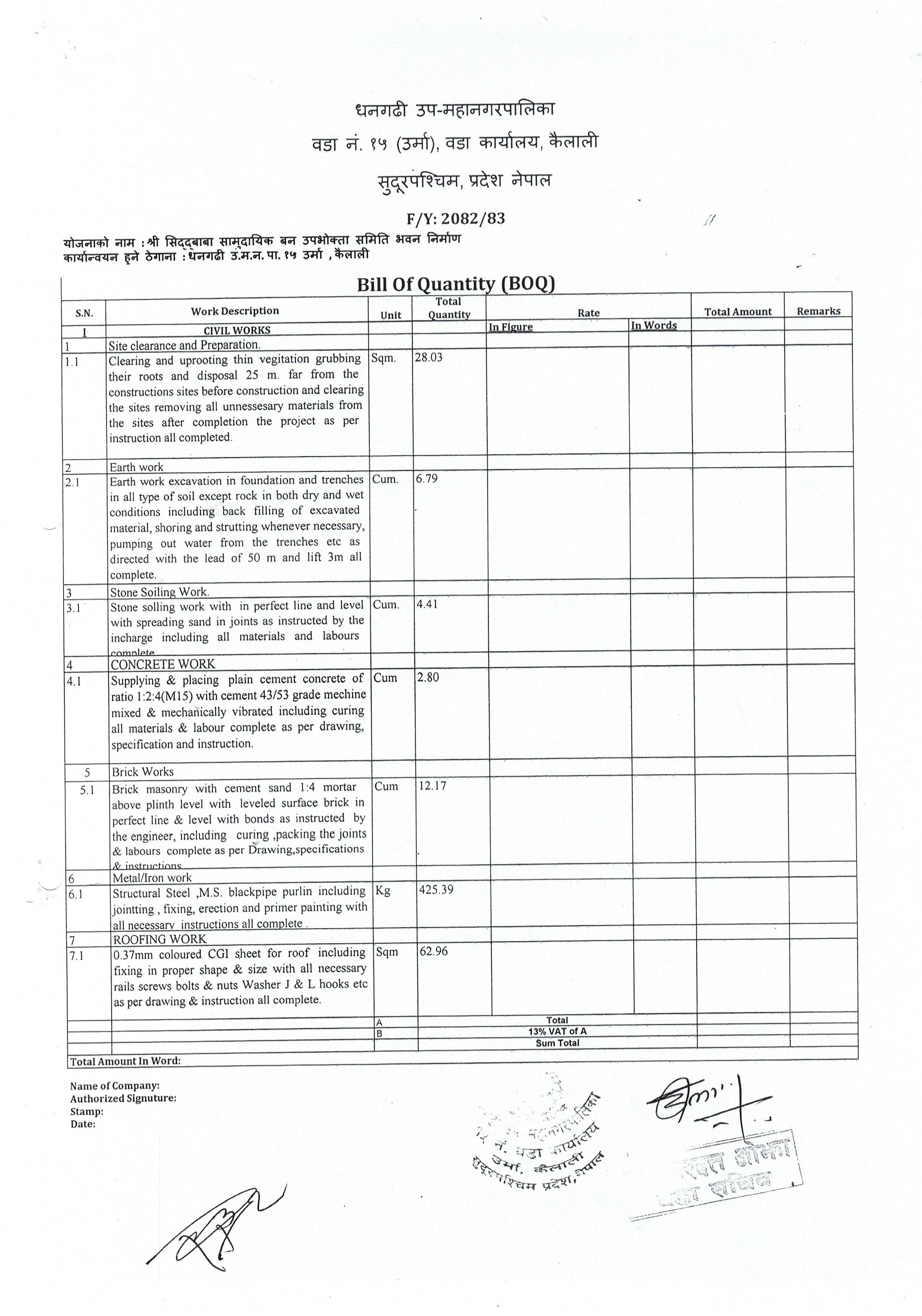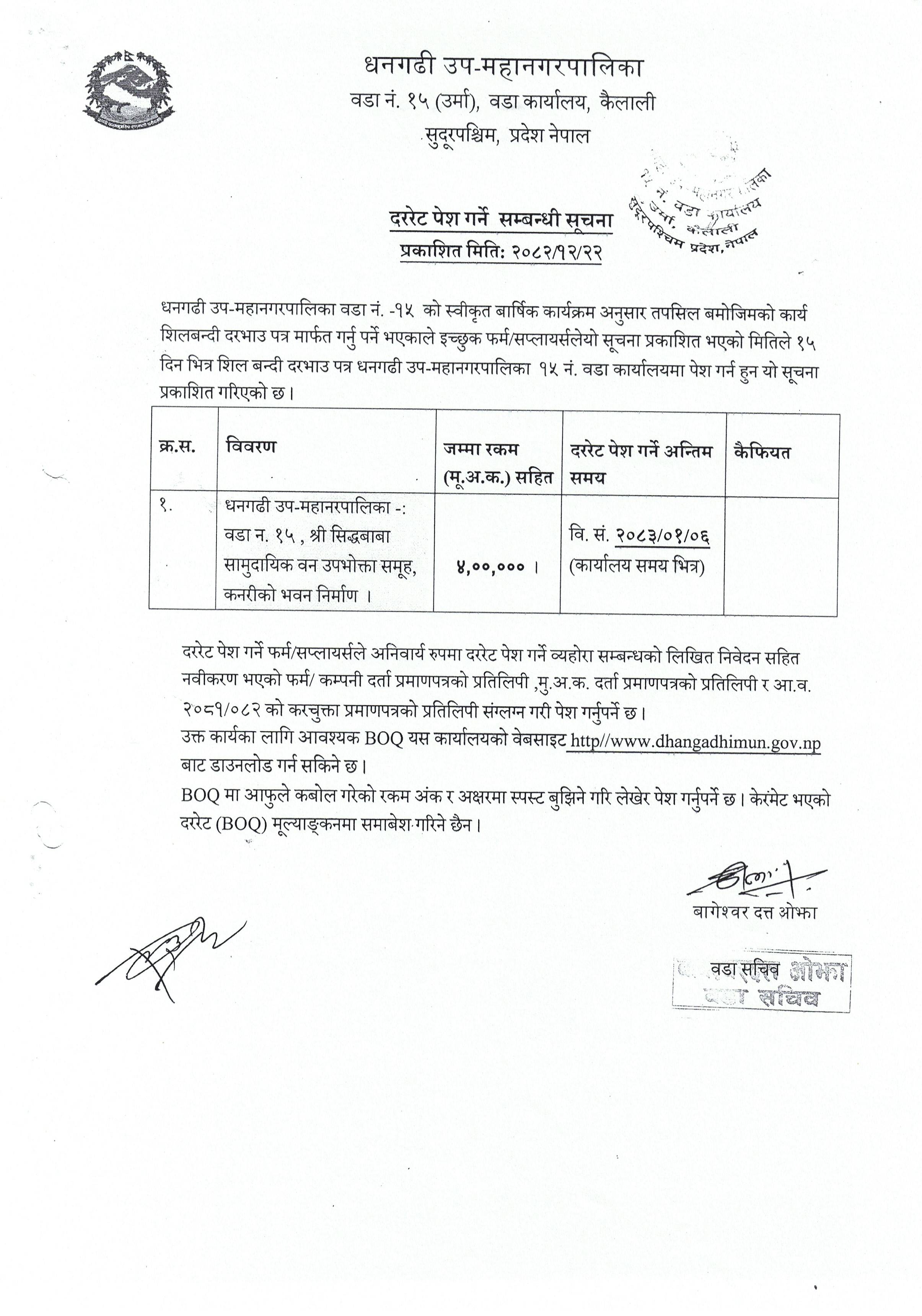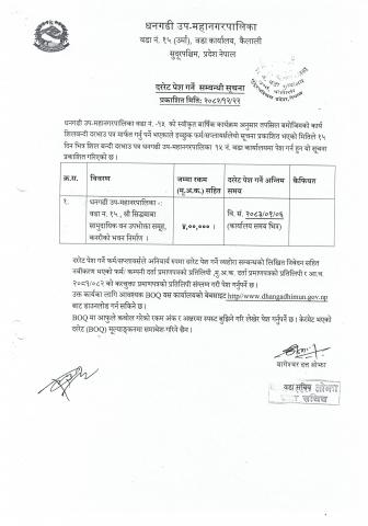 वडा नं १५ को दररेट पेश गर्ने सम्बन्धी सूचना [भवन निर्माण कार्य]