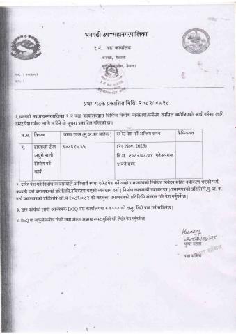 वडा नं १२ को कार्यालयको दररेट पेश गर्ने सम्बन्धी सूचना [Contruction of Various Work ]