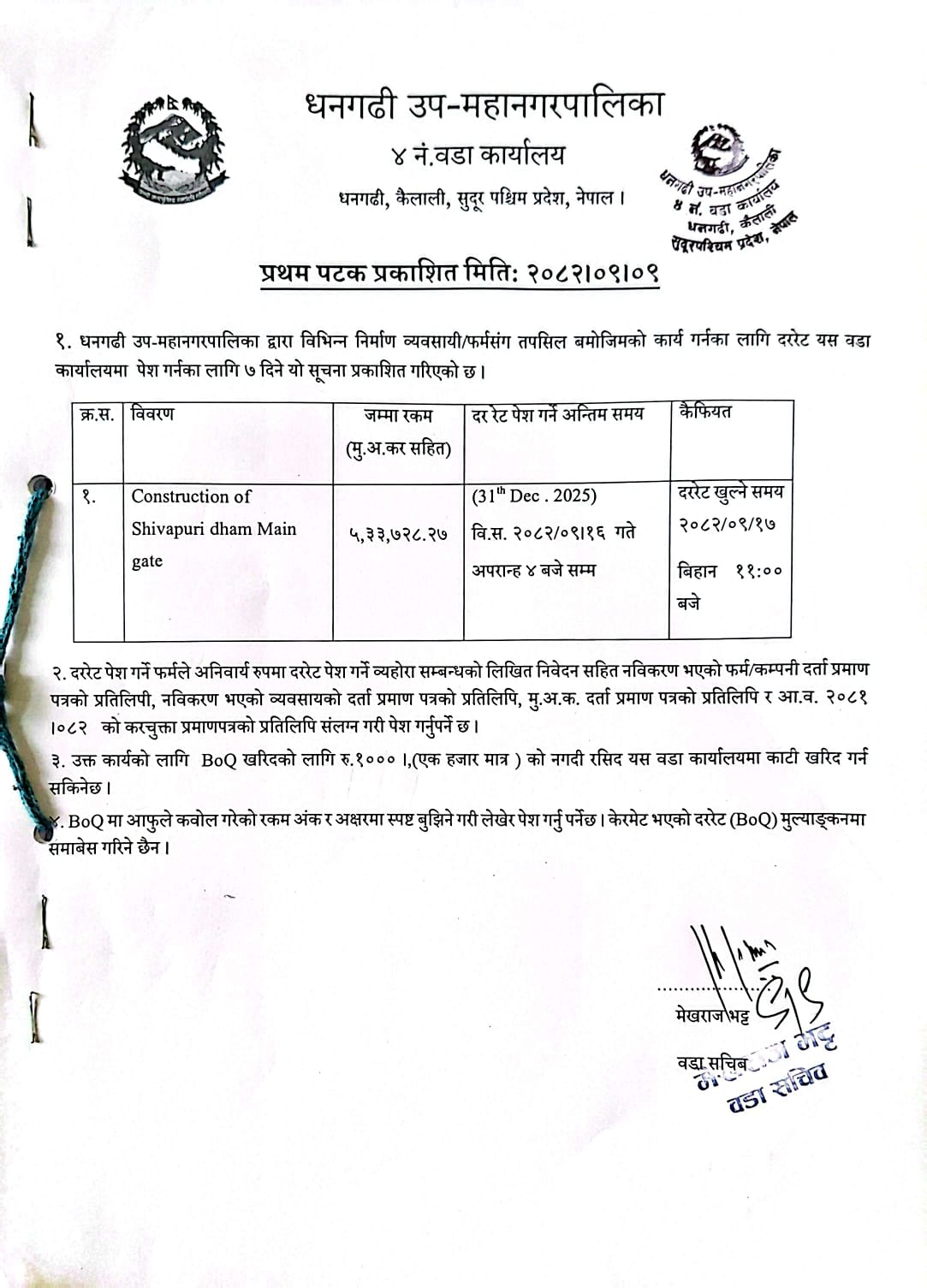 » वडा नं ४ को Shivapuri Dham Main Gate निर्माण सम्बन्धी सूचना