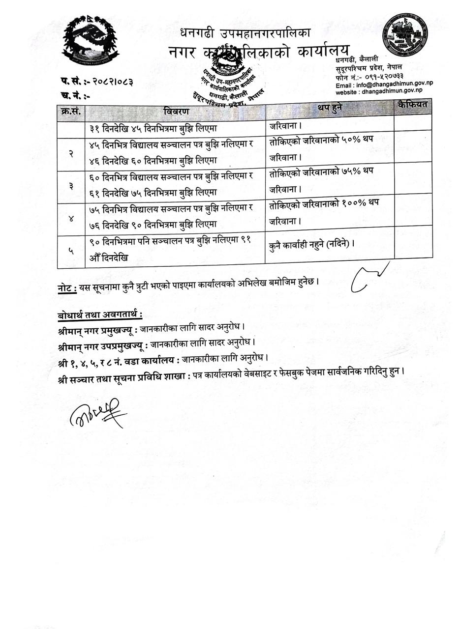 » विद्यालय सञ्चालनको लागि पत्र बुझिलिने बारेको ३० दिने सूचना ।
