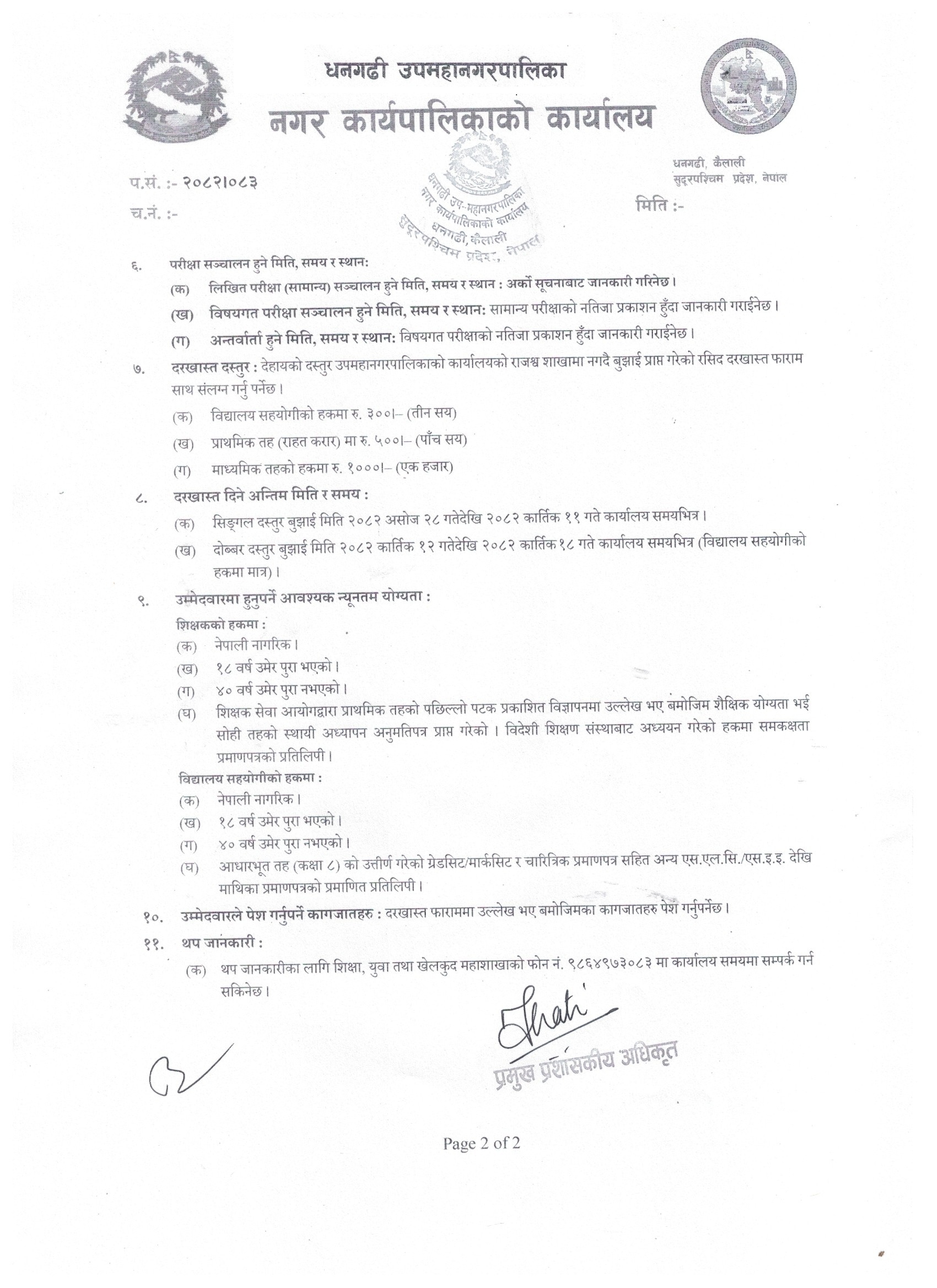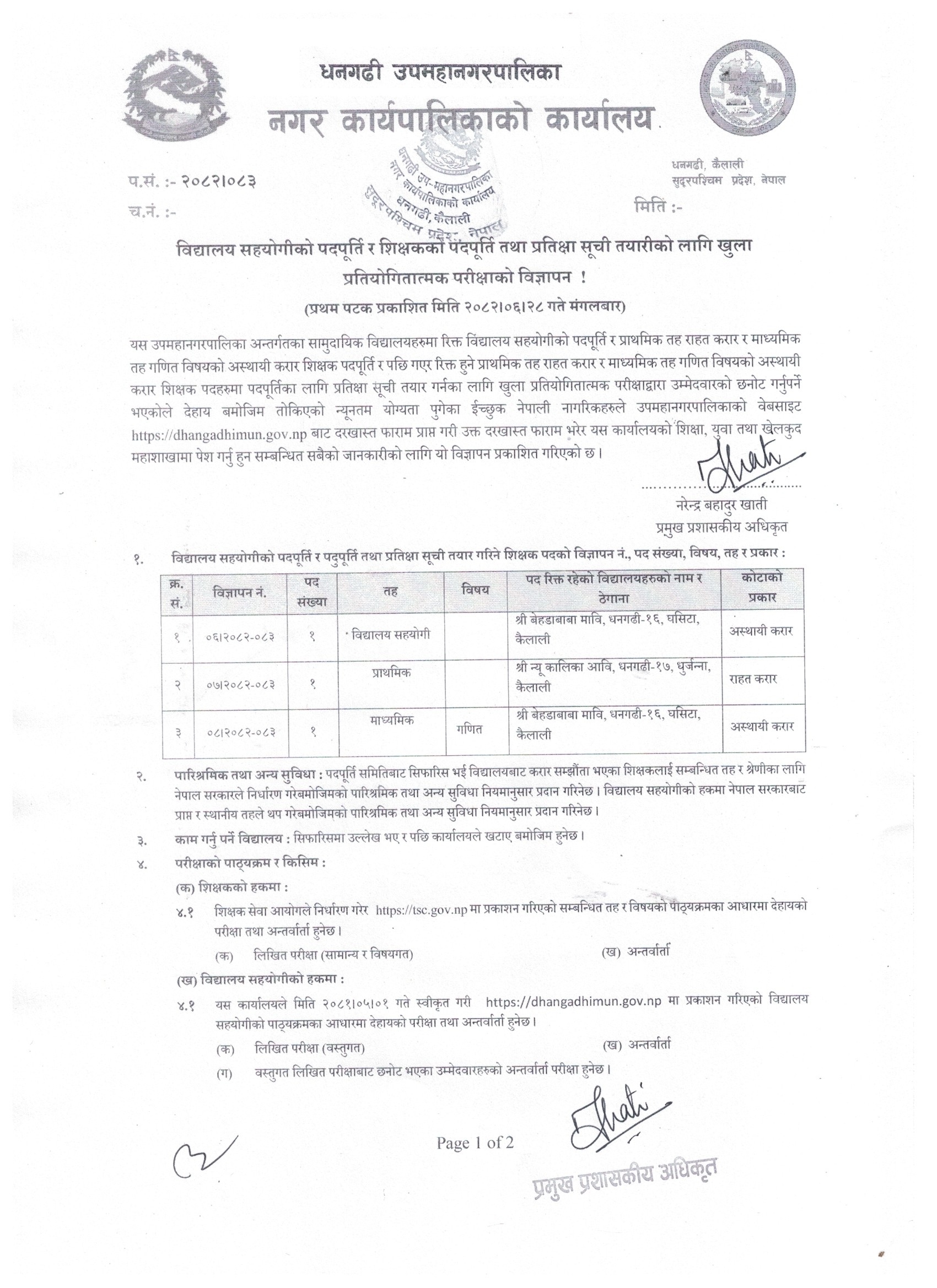 » विद्यालय सहयोगीको पदपूर्ति र शिक्षकको पदपूर्ति तथा प्रतिक्षा सुची तयारीको लागि खुला प्रतियोगितात्मक परिक्षाको विज्ञापन !