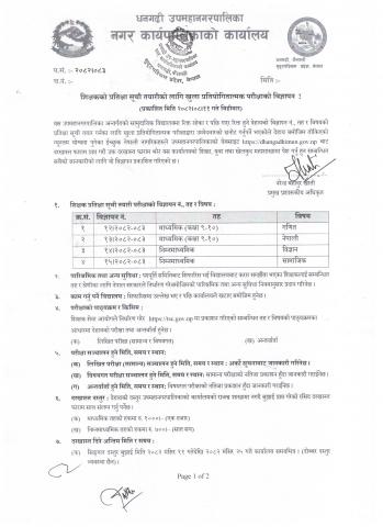 शिक्षकको प्रतिक्षा सूची तयारीको लागि खुला प्रतियोगितात्मक परीक्षाको विज्ञापन !