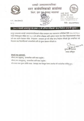 २०८२ सालको आधारभूत तह (कक्षा ८) को अन्तिम परीक्षाको केन्द्र निर्धारण सम्बन्धी सूचना !