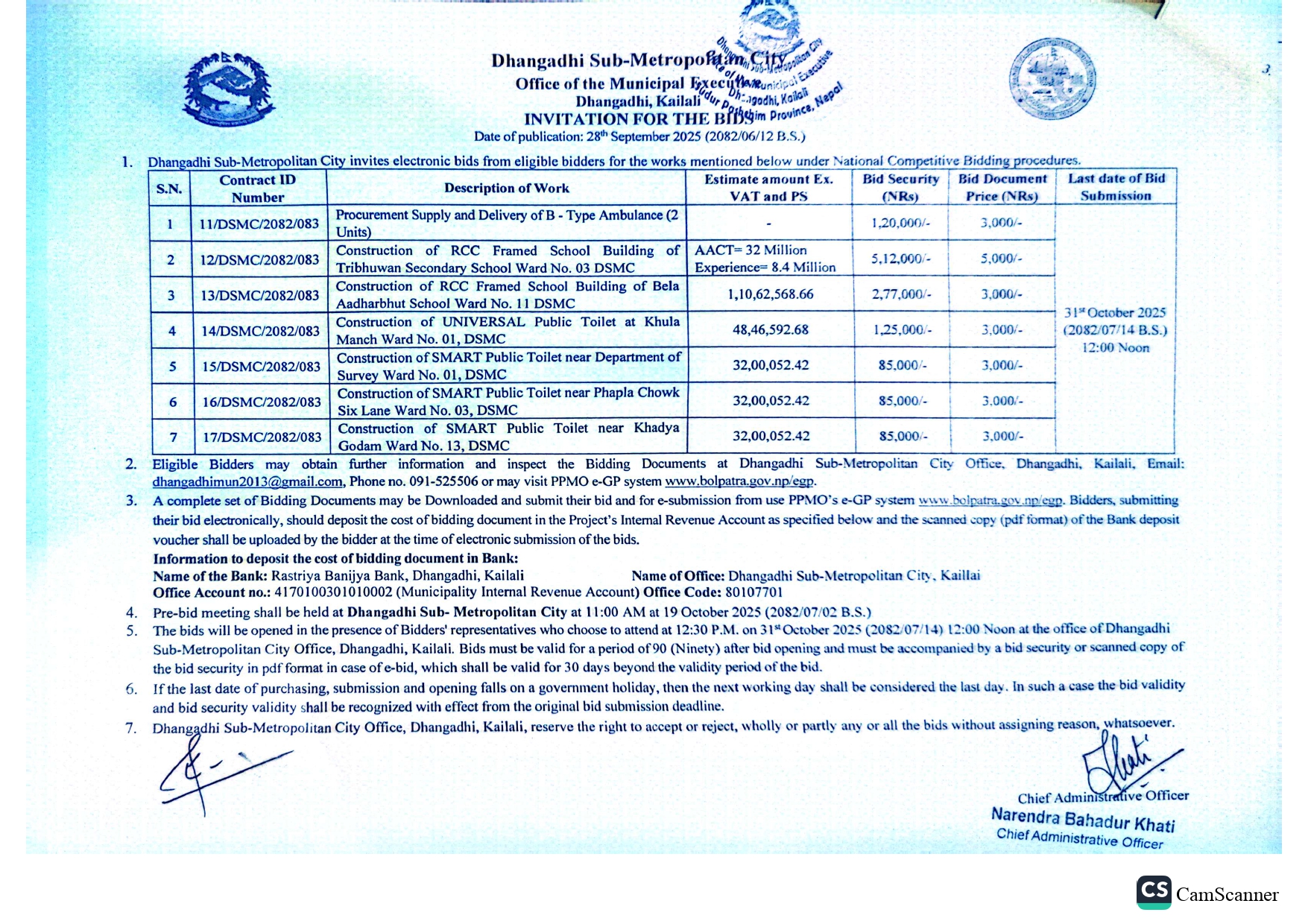 Inivitation for the Bids [Contract ID no. 11, 12-17] [For various work]