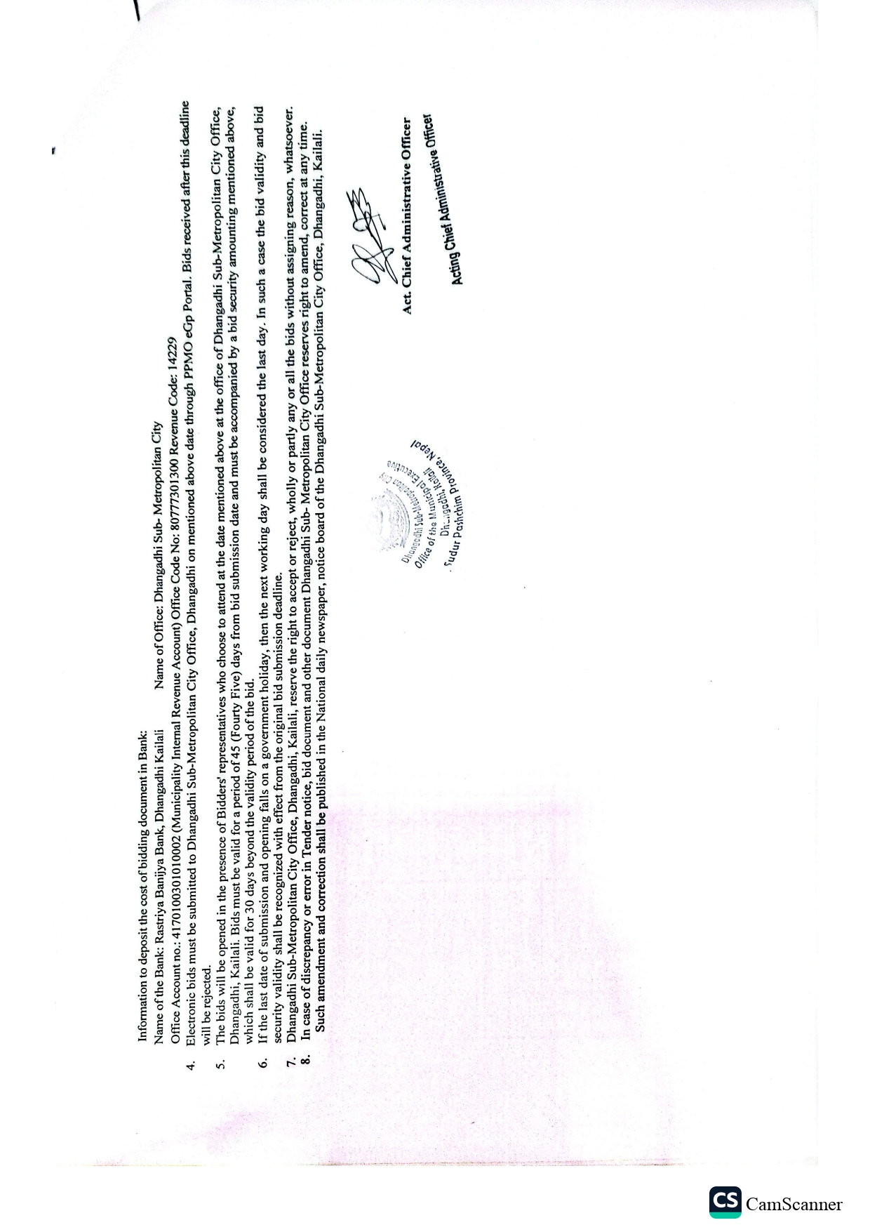 Invitation for the sealed quotations [Contract Id no. 44,45,46,47,48,51,52,53]